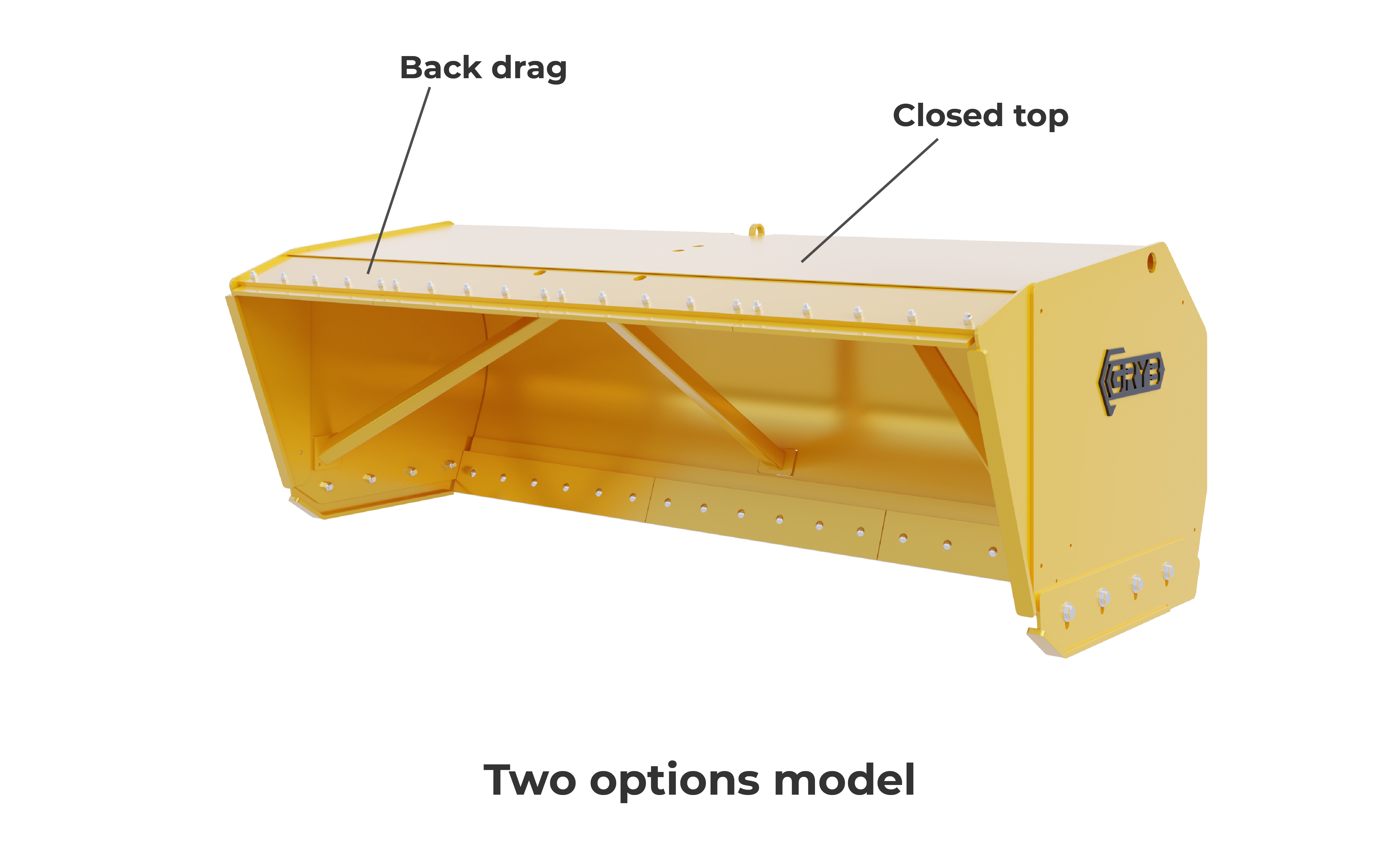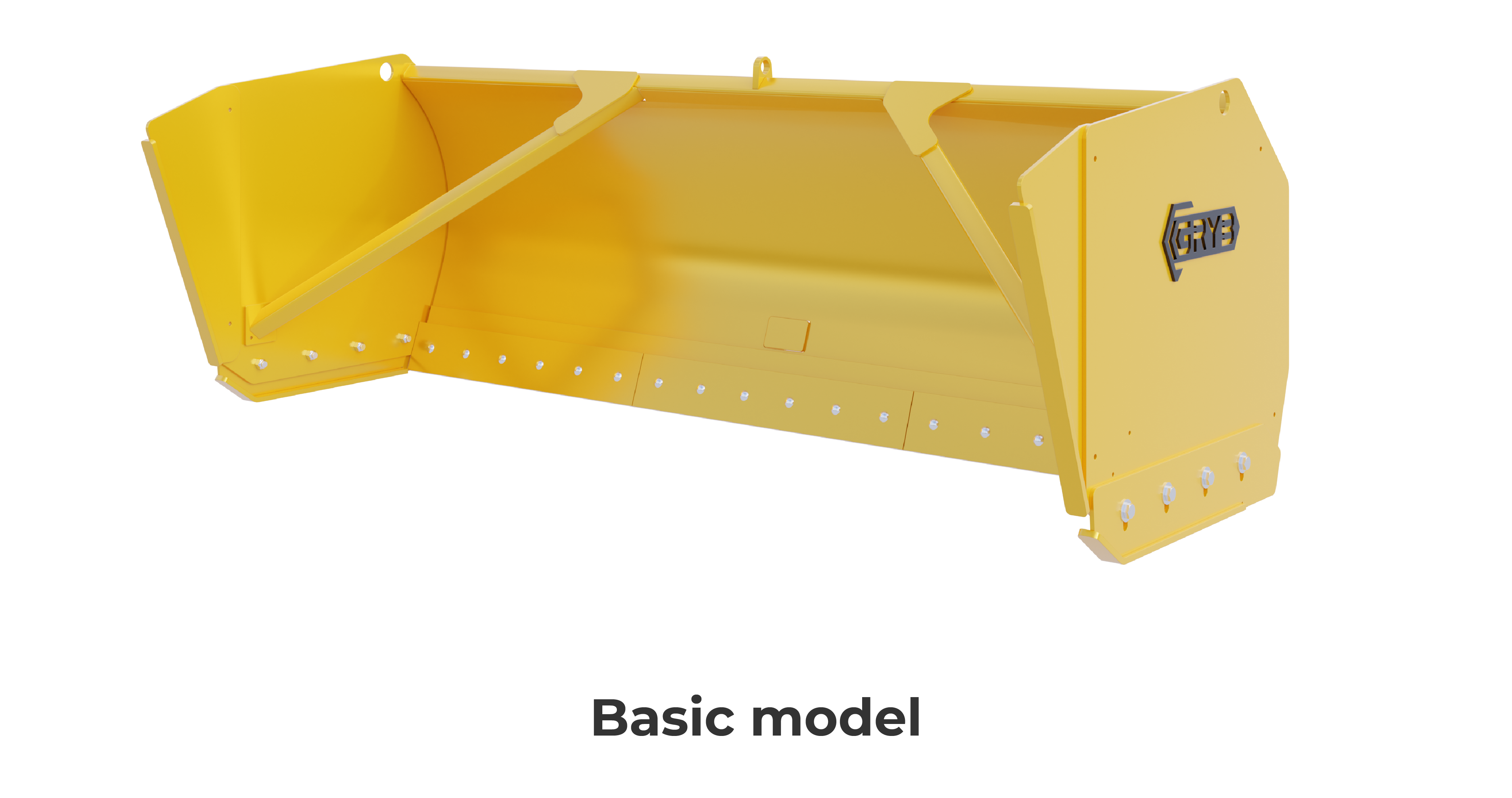 GRYB's reversible snow pusher is a conventional model with a bottom-fixed blade. A retraction blade can be installed on top of the reversible snow pusher to increase your snow-clearing operation possibilities. With its highest durability, the GRYB reversible snow pusher adapts to all outdoor work types. Three models are available: an open pusher, a sealed pusher with a retraction blade, and an open pusher with a retraction blade.